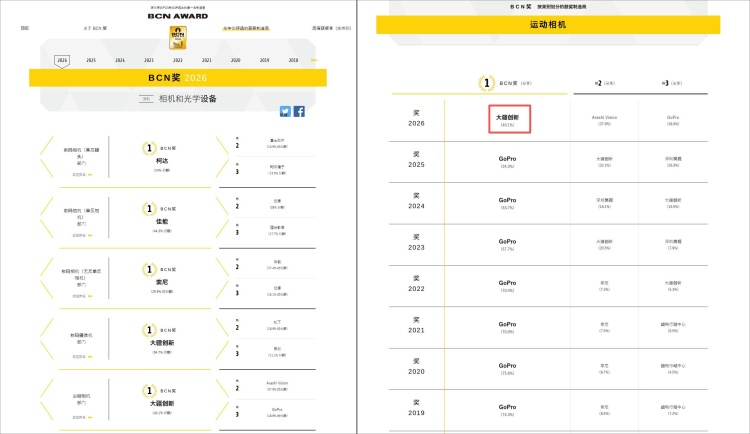 而在1月19日,日本权威零售分析机构BCN+R也向大疆颁发“BCN AWARD 2026”两大年度奖项,大疆一举包揽“数码摄像机”与“运动相机”两大品类年度销量冠军。其中,韩国免费A级作爱片无码在竞争激烈的运动相机领域,大疆凭借Osmo Action系列、Osmo 360全景相机以及Osmo Nano穿戴相机等产品的卓越表现,首次夺得该品类年度销量第一,打破GoPro在日本市场的十年销量垄断地位,标志着大疆在运动影像领域已建立起全面的市场领先优势。
